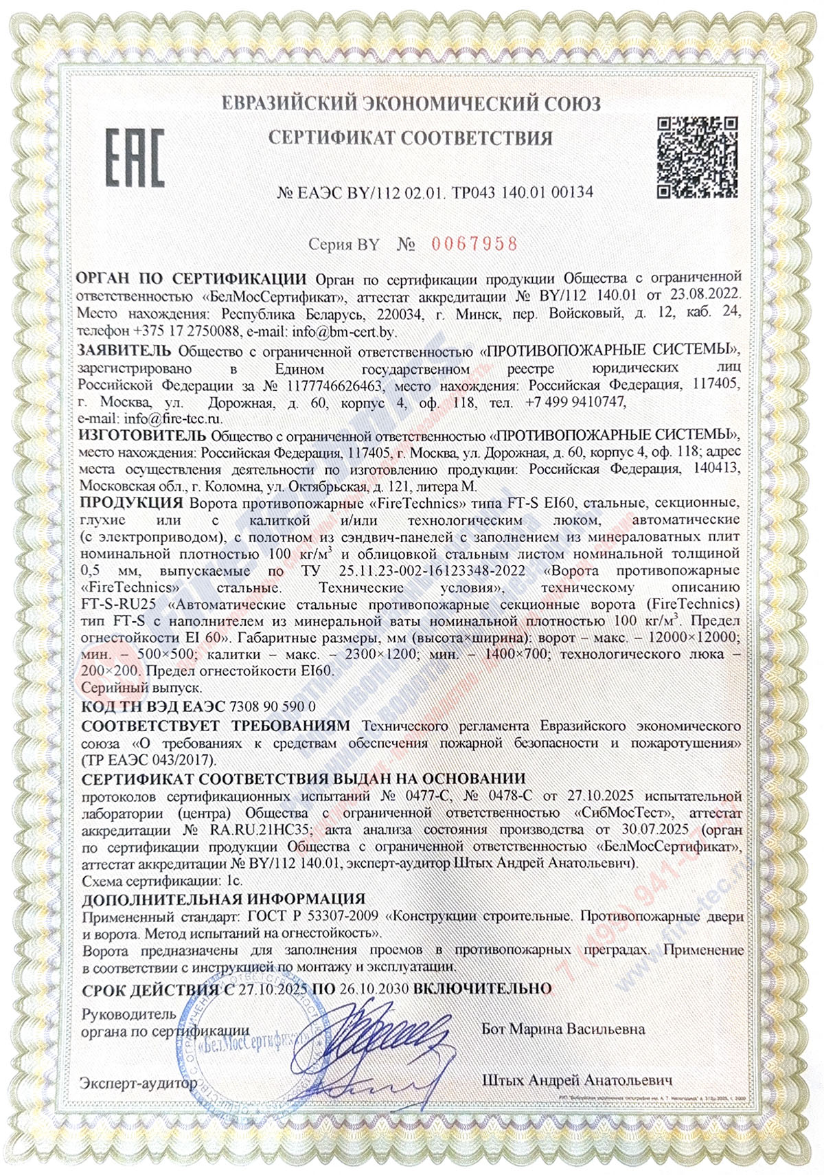 Комплексное решение: Секционные Противопожарные ворота и Шторы FireTehnics EI60